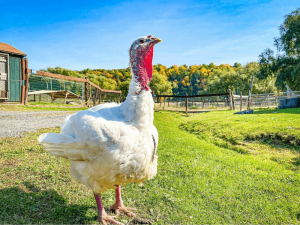 Factory farming involves confining high numbers of farmed animals within the smallest spaces possible in order to maximize profits. Many turkey farms are factory farms. Every aspect of a turkey’s life is entirely controlled by humans, from when they breed, to how fast they grow, to where they live. Factor farming transforms turkeys from curious, independent birds into commodities for human consumption.